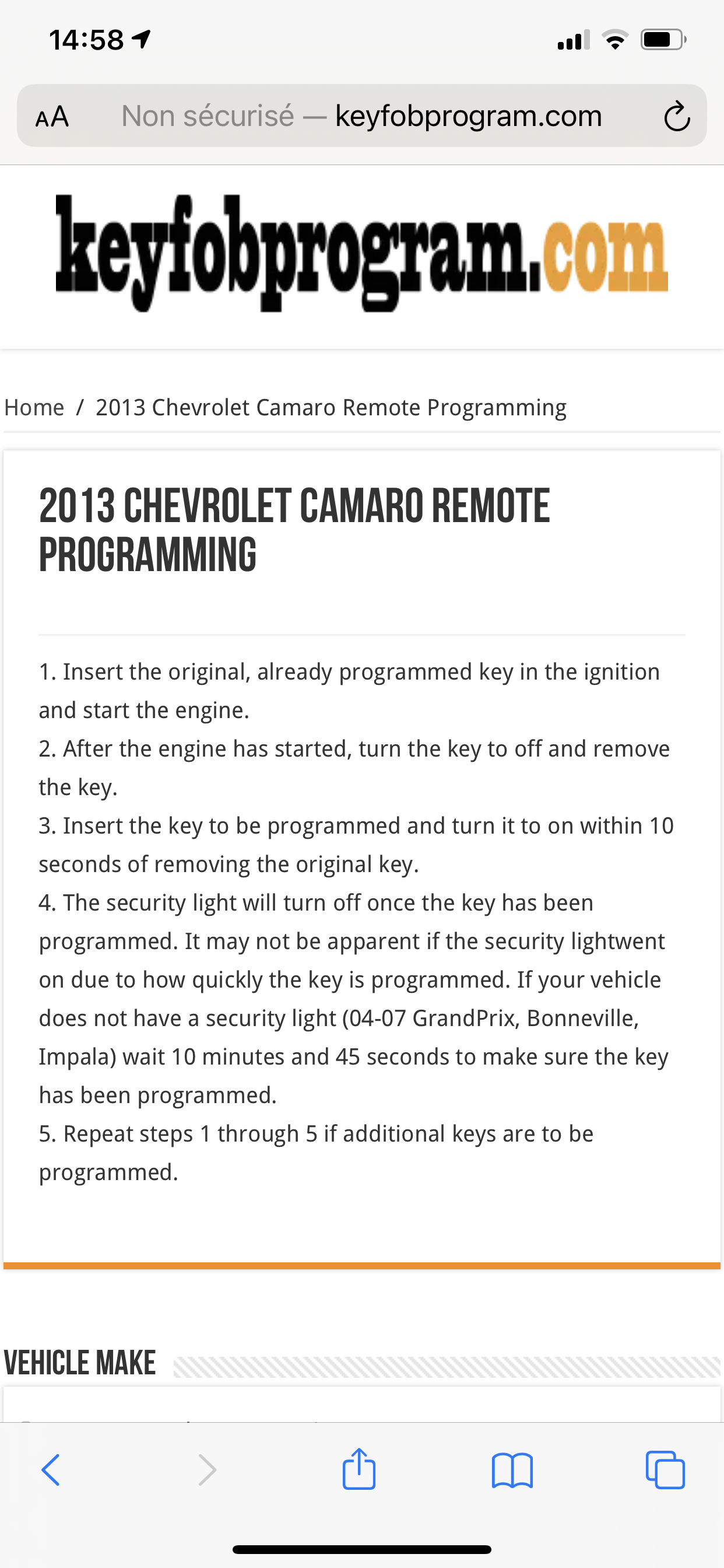 Instructions gratuites de programmation à distance du porte-clés pour une Chevrolet Camaro 2013