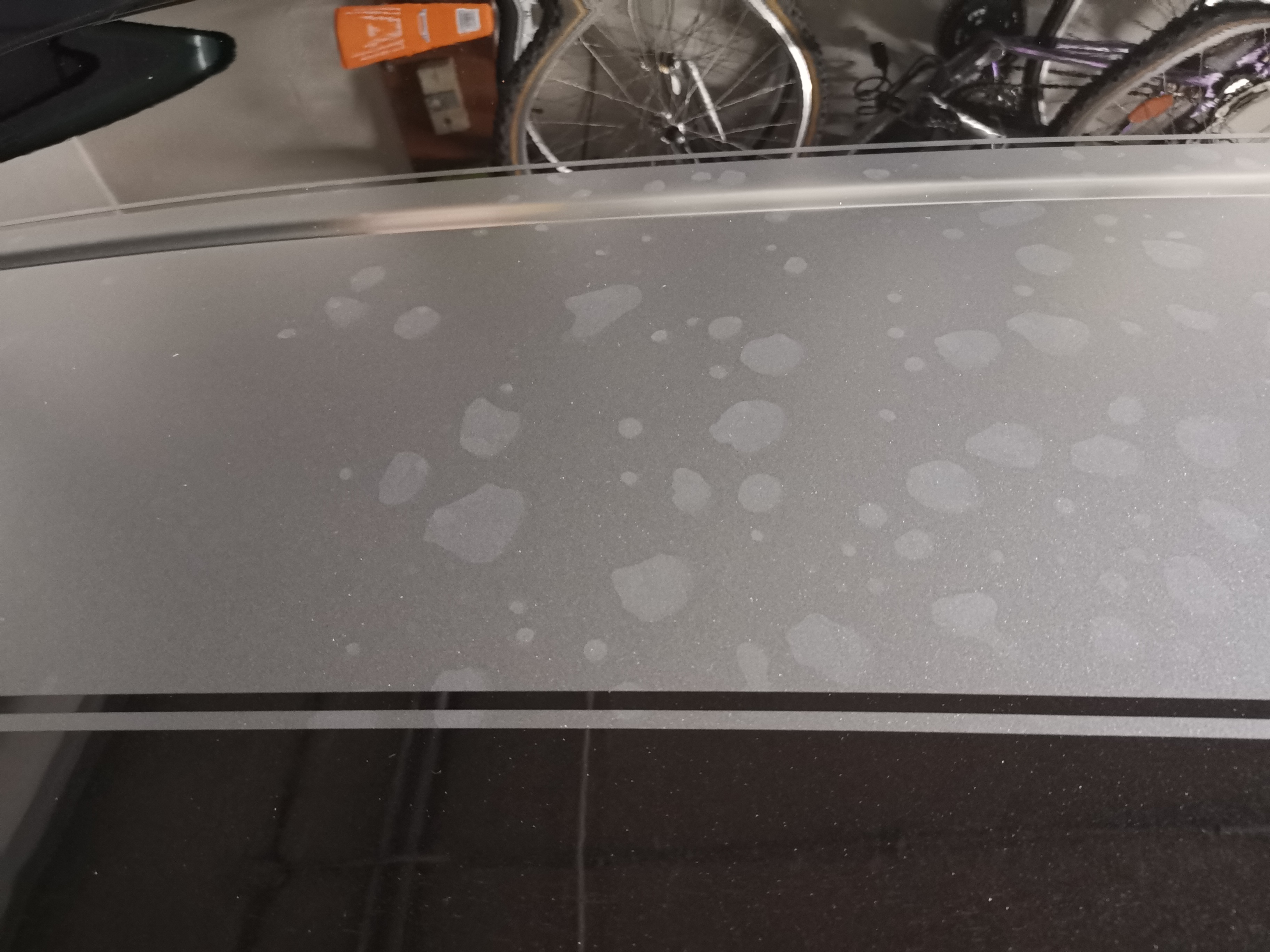 Gros mystère, je me retrouve avec des taches sur le sticker Gris mat du capot (voir photos)