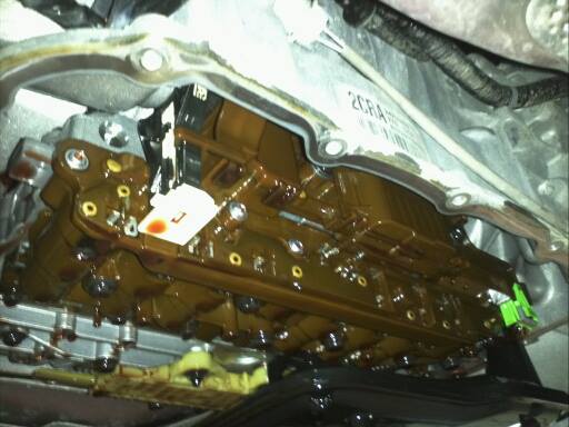 Les photos montrent ce qui se cache à l'intérieur du carter de boite de vitesse. On peut apercevoir les électrovannes de commande de passage de vitesse, le bloc distribution, et le bloc commande des électrovannes.