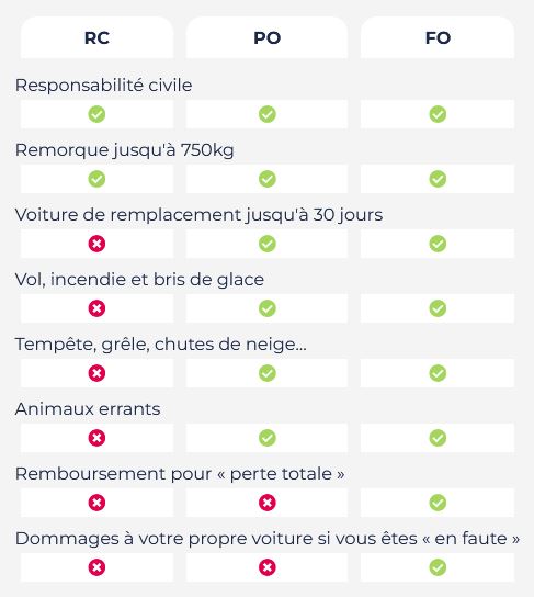 FO = Full omnium Pas les inondations du coffre