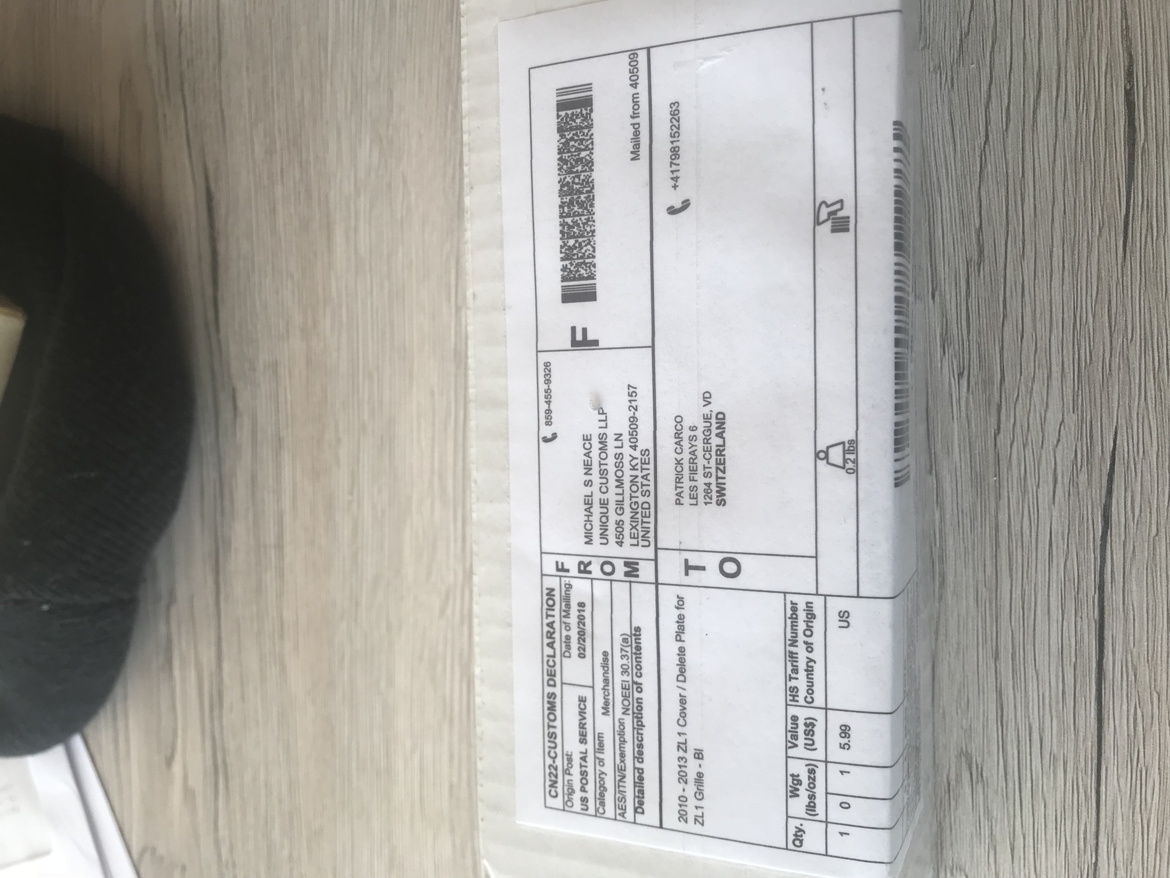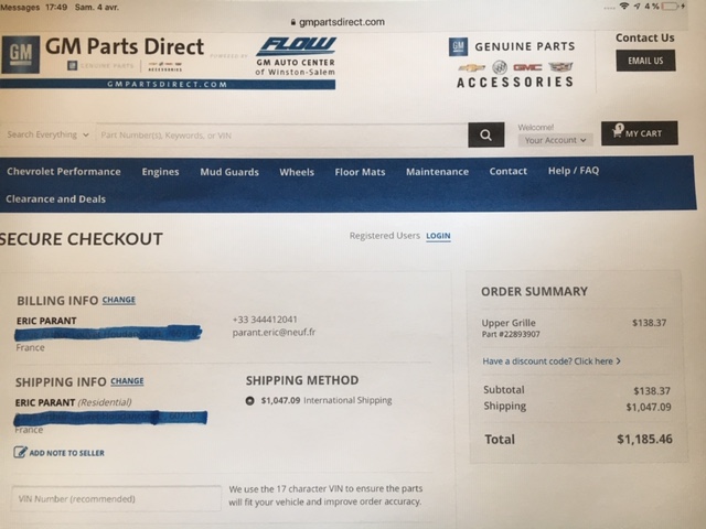 J'ai donc voulu commander la grille ZL1 chez "GM Parts Direct .com "