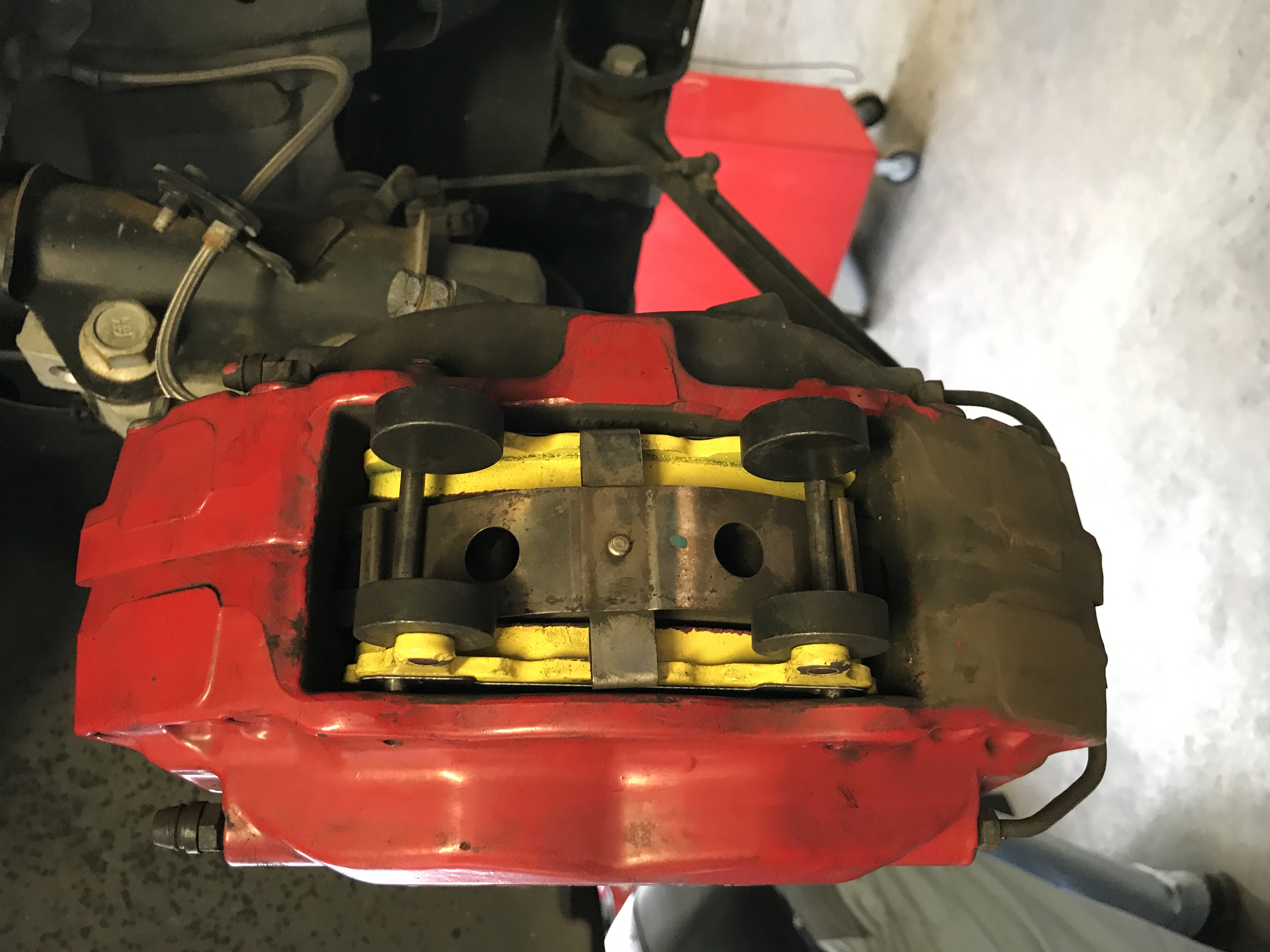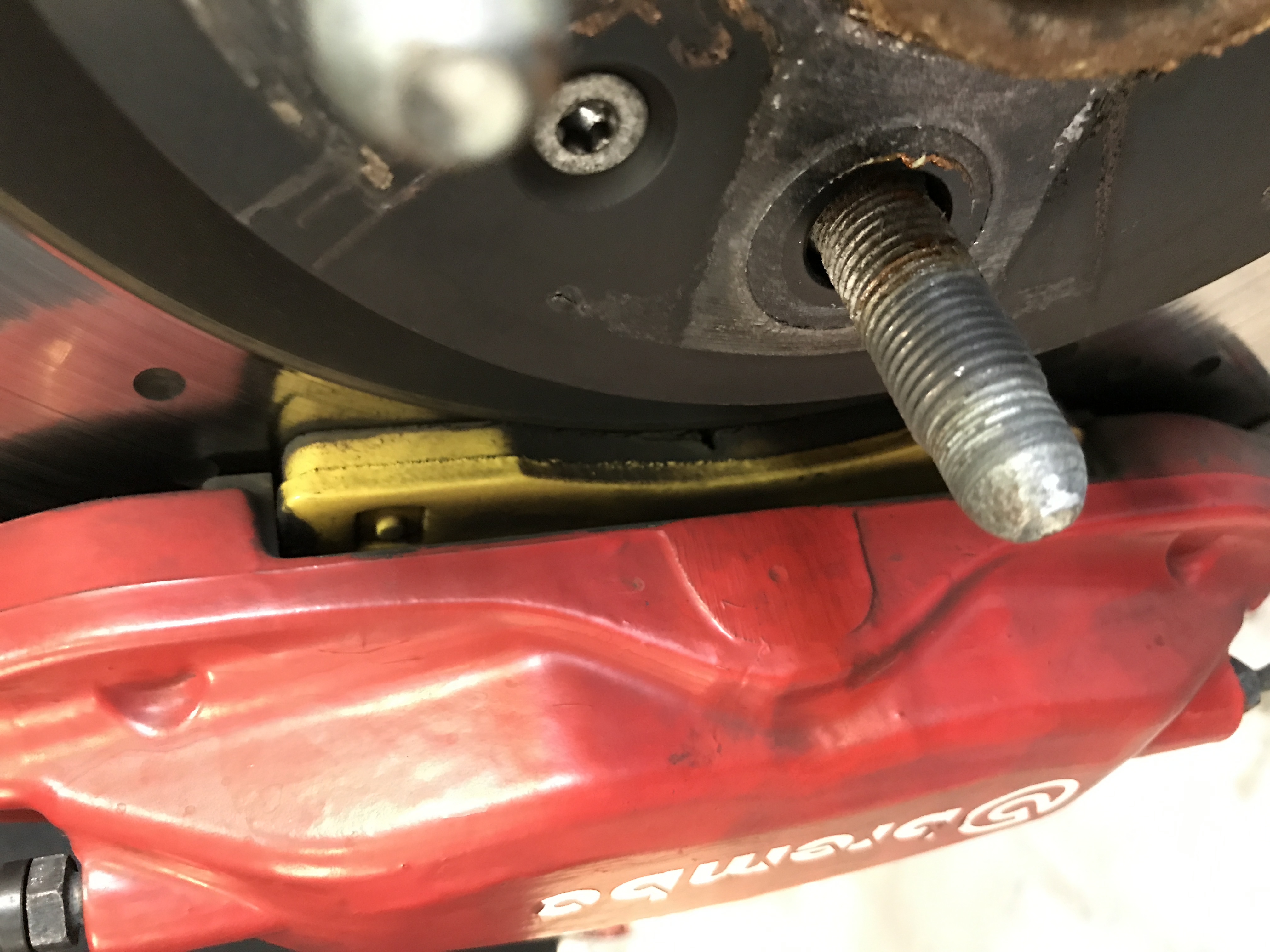 Les plaquettes pouvaient faire encore 5-6000 km . Le visuel sans démonter n'est donc pas convaincant . Mais je sais maintenant qu'elles feront 30-35 000 km . Par contre,l'usure était symétrique intérieur-extérieur et cela rassure quand on pense que les internes doivent s'user + vite que les externes . Les Brembo écrasent donc le disque symétriquement .