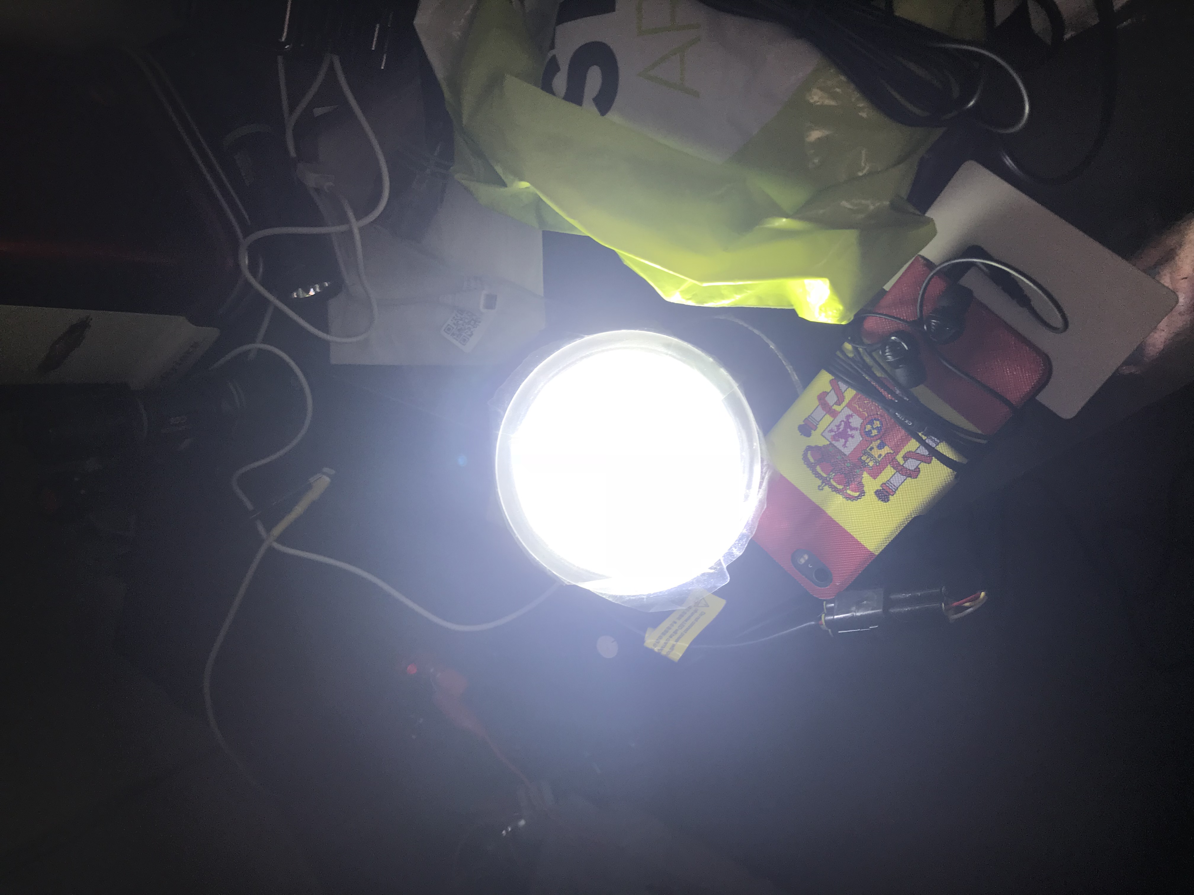 Edit: ben merde, la photo censée représenter les deux modes allumés est en fait le mode AB seul branché sur une pile 9V, c’est le phare avec le câble endommagé a l’extremité Côté prise et pour ne pas risquer un court-circuit lors de la recherche des polarisés, j’ai utilisé une pile quasiment vide.