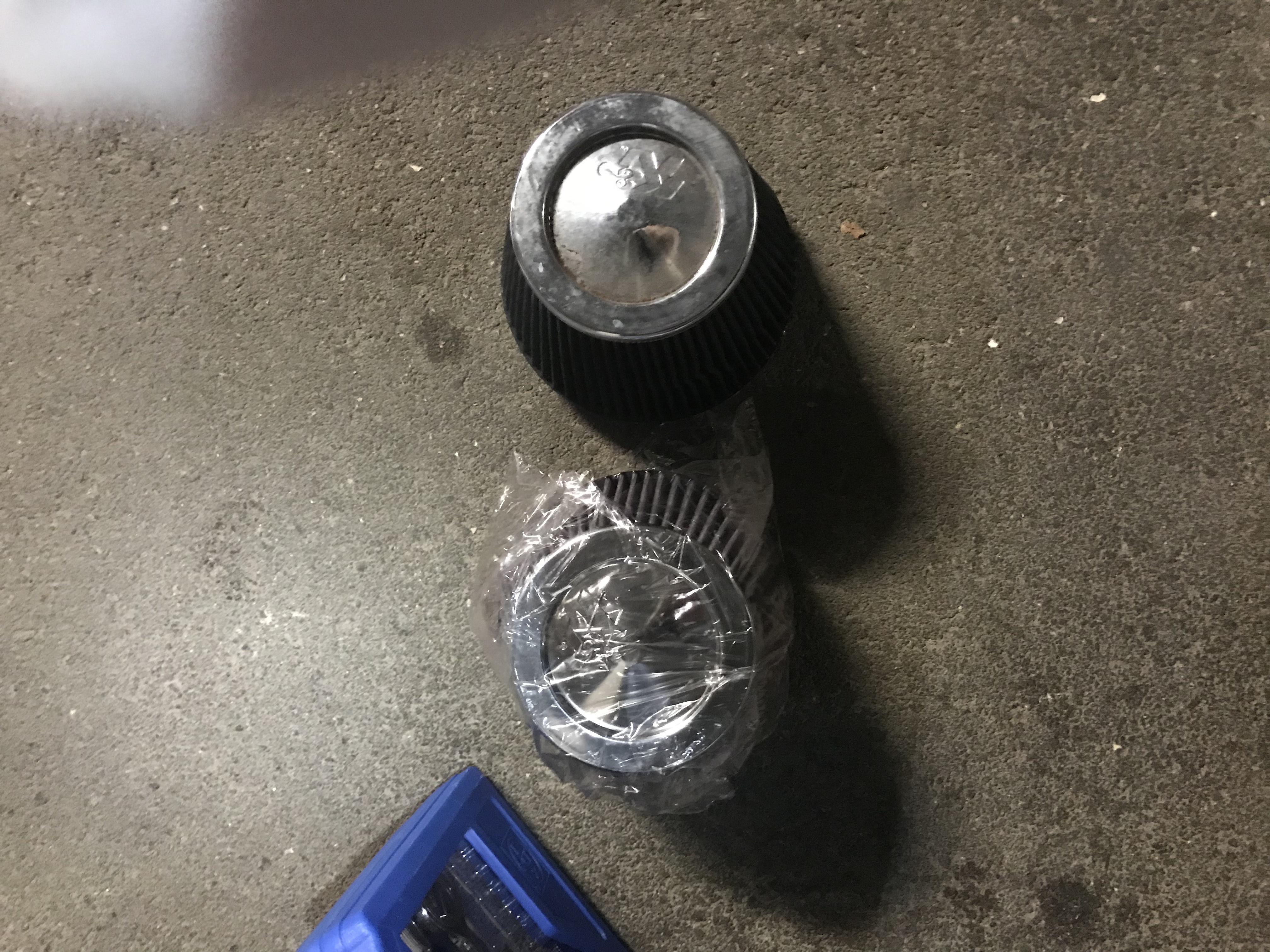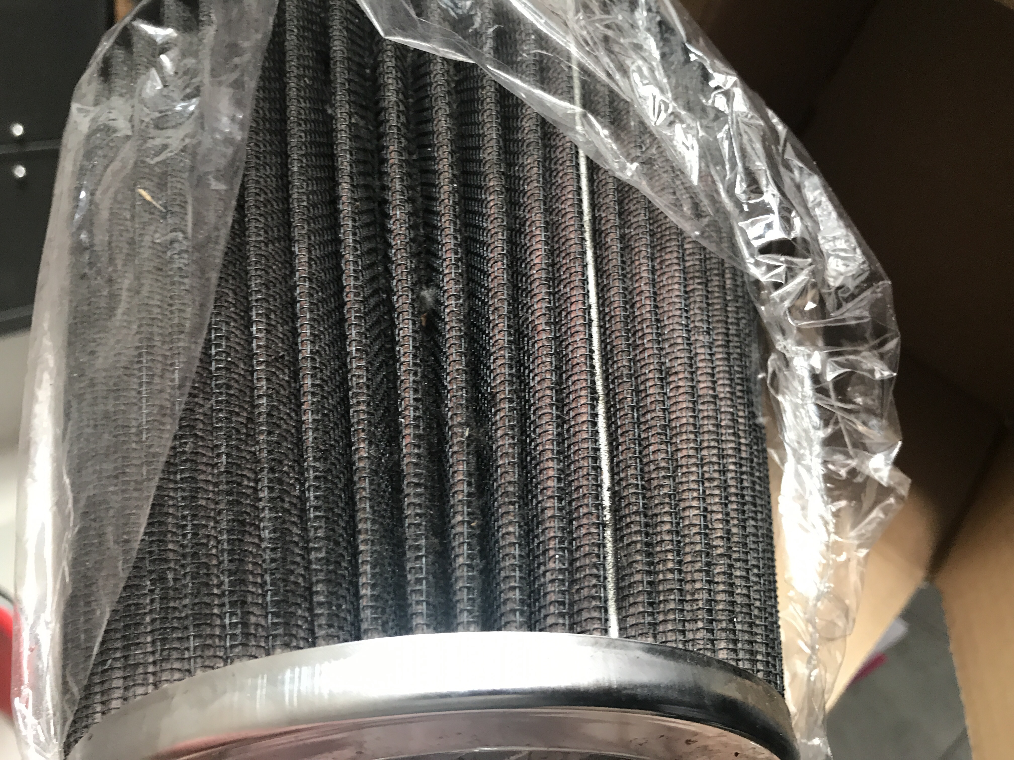 Et voilà, changement fait en moins de 2 minutes, c’etait bien une illusion d’optique, les filtres sont identiques, par contre, je pense que ma blanquette va beaucoup mieux respirer en accélération car le sale est vraiment... très sale, y’a des mouches séchées, des moustiques, des feuilles mortes et surtout beaucoup de poussière et de sable, bon, il a quand même fait 24000 bornes depuis le montage mais il ne paraissait pas si sale quand il était en place.