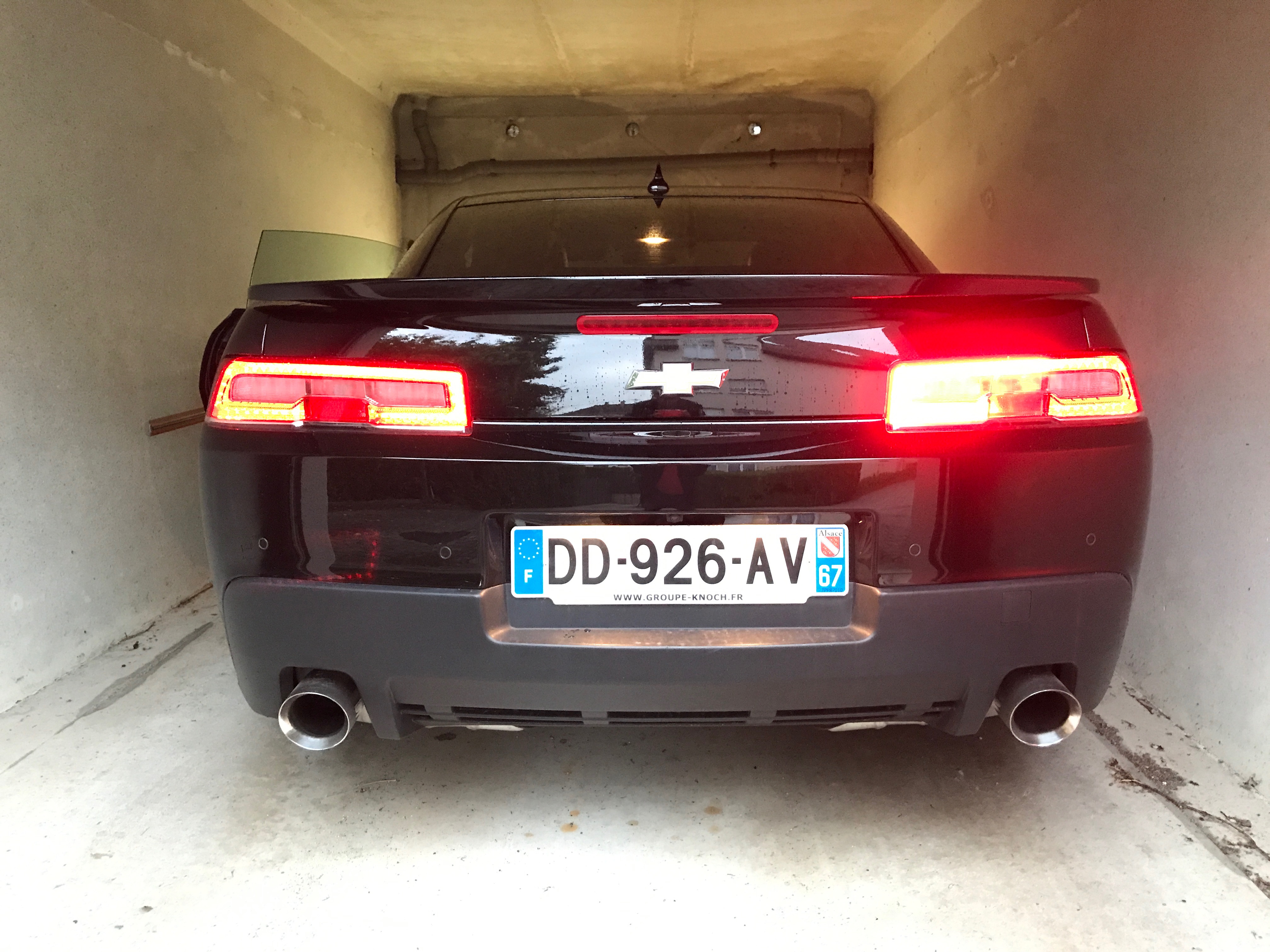 Modele : Coupé BVA 6.2 SS blanche bandes noires "Corsica" 2013, bouclier avant ZL1, optimisation Hartt Racing, K&N Typhoon, Borla S-Type, H&R -4cm, DLW Uros K-S 9.5 et 10.5", Phantom grill.