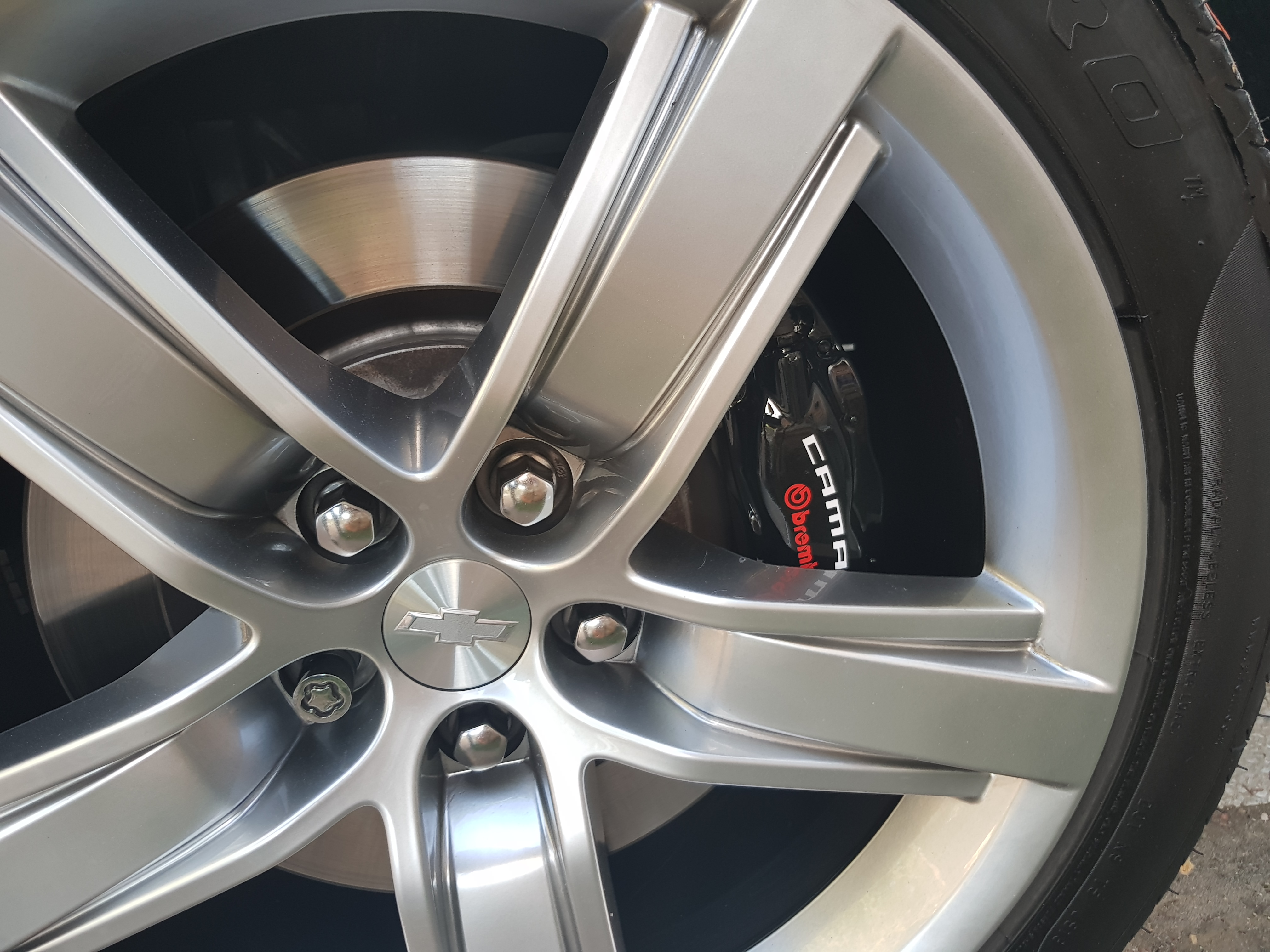 Donc la peinture haute température c'est eux, les stickers Brembo et Camaro haute température sur mesure c'est eux aussi, la pose aussi bien sûr, ils appliquent aussi un produit d'entretien.