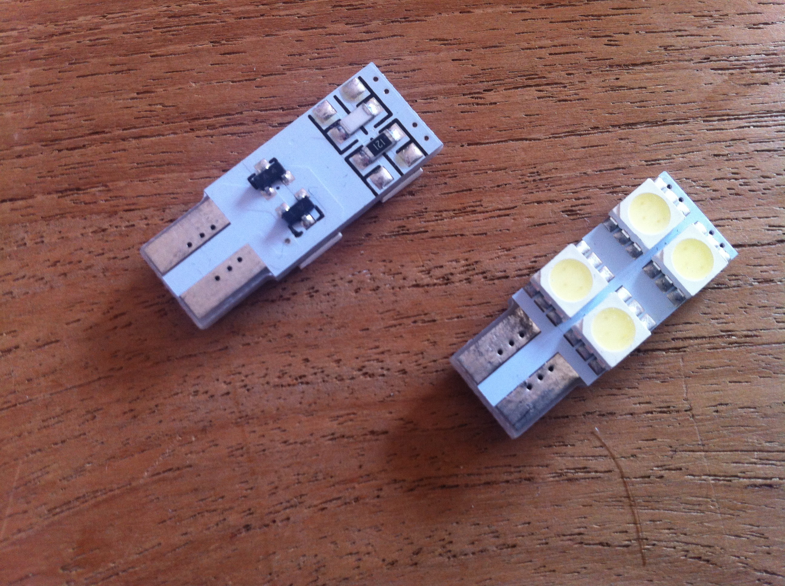 Alors il s'agit de trouver des leds qui vont bien pour nos camaro car il existe toute sorte de T10 W5W : celles qui éclaire d'un coté, celles qui éclairent des deux coté, celles qui éclairent juste au bout, etc etc etc).