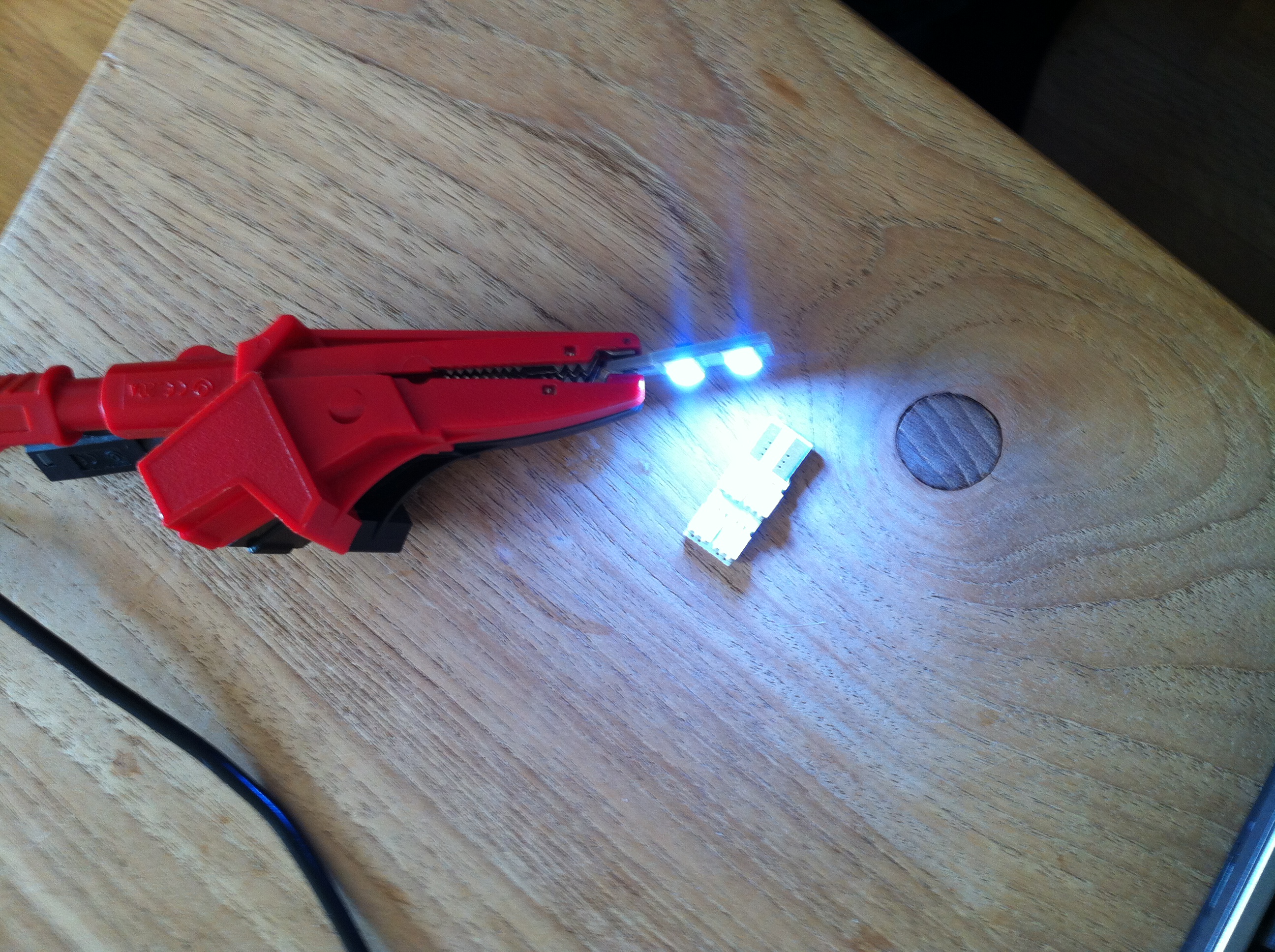 D'ailleurs, parlons conso : sur 12V, je mesure environ 80mA, soit 1W pour 4 leds (ou chaque led et en réalité l'association de 3 leds). C'est pas énorme. Tant mieux