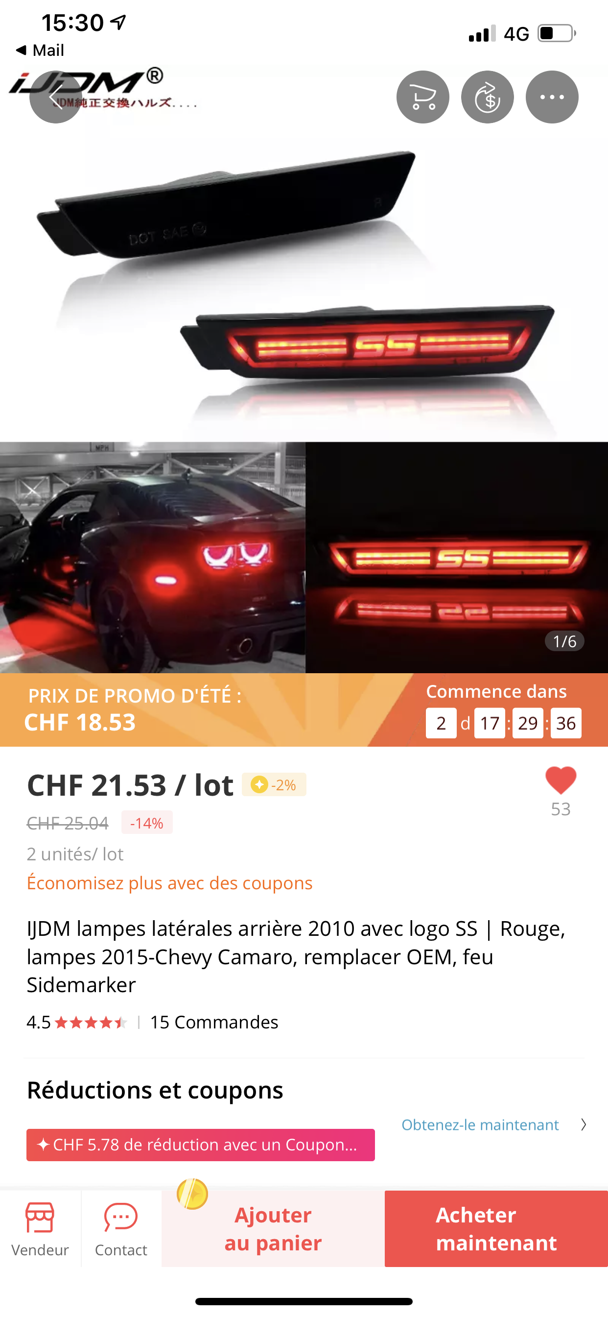 en cherchant les prises pour le kit fdj/halo que l’ami G69 m’a offert, je suis tombé sur un kit 2 pièces (pour l’arrière) de side maker qui inscrivent SS quand ils sont allumés, malheureusement, je n’en n’ai trouvé qu’en noir actuellement, mais je sais qu’ils existent en "crystal", et dès que je tombe dessus, je les prends pour les mettre à la place des Oracle arrière ton carrosserie, ça jurera moins d’avoir du crystal que du noir, mais ils ont l’air de bien rendre.