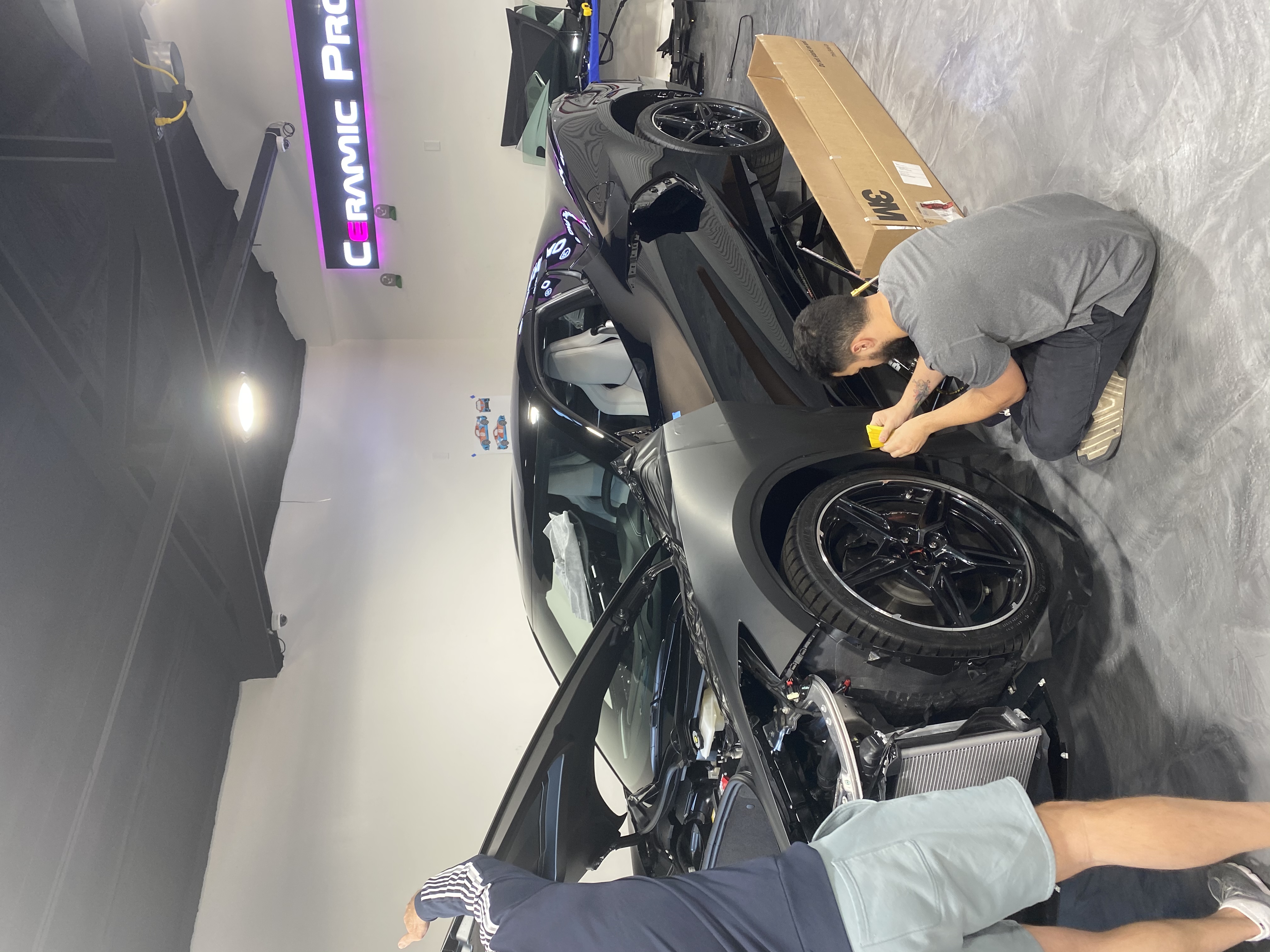 Bonjour, je démarre ce post de ma C8 ( j’espère être dans le bon endroit). Elle est parti pour changer sa robe en matte black, même si on dirait gris c’est l’appellation que l’on donne. J’avais une Camaro noir matte et cette couleur est complètement différente. Je pense que le rendu devrait être pas mal 😏😄.