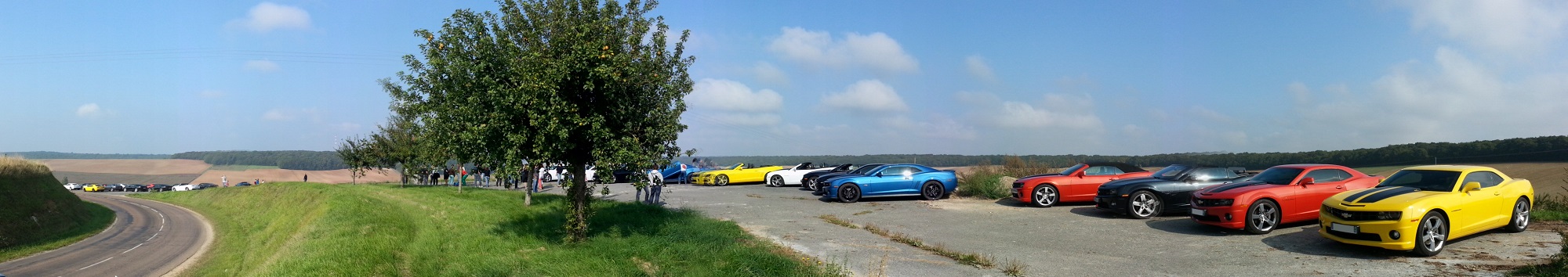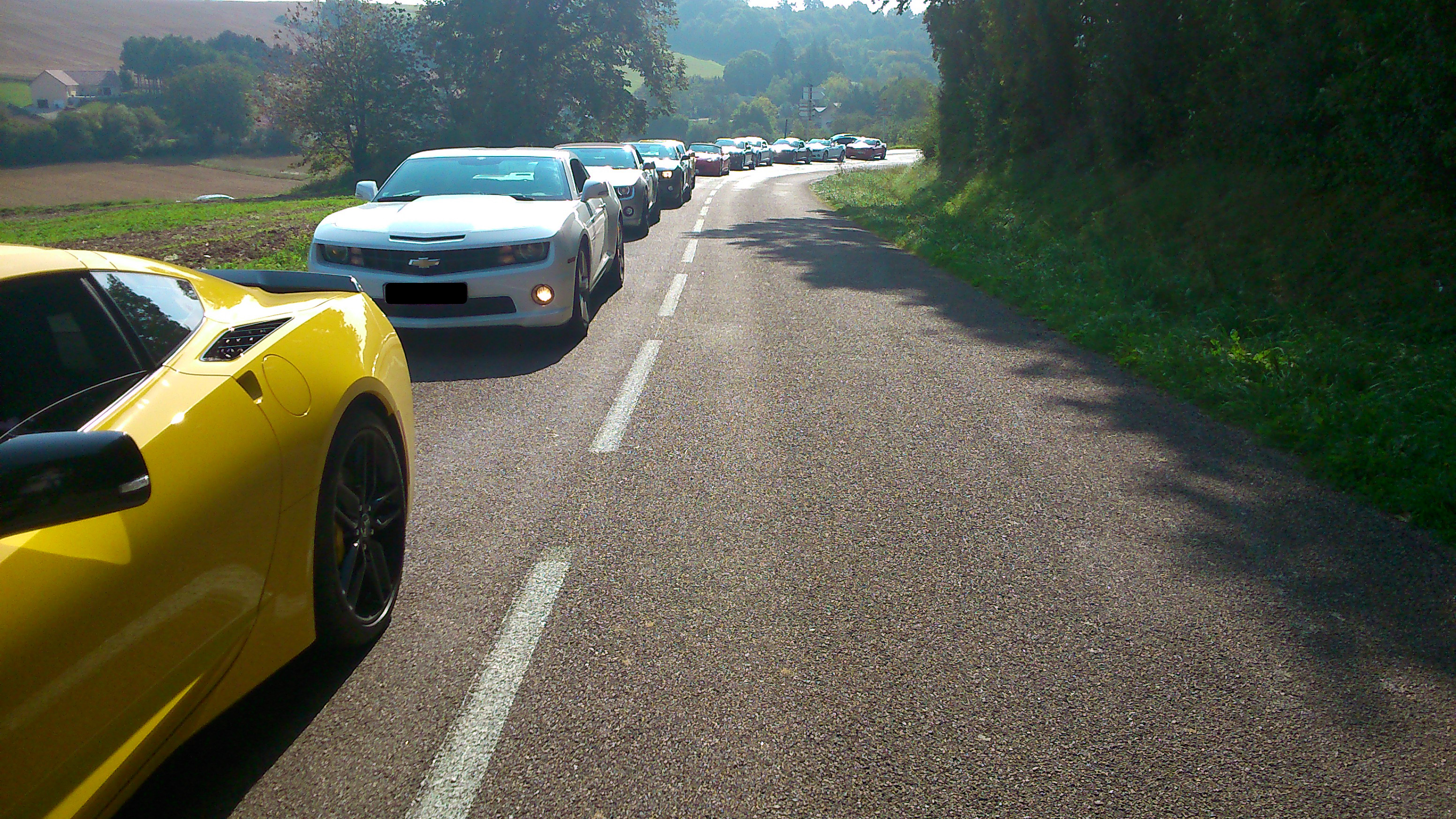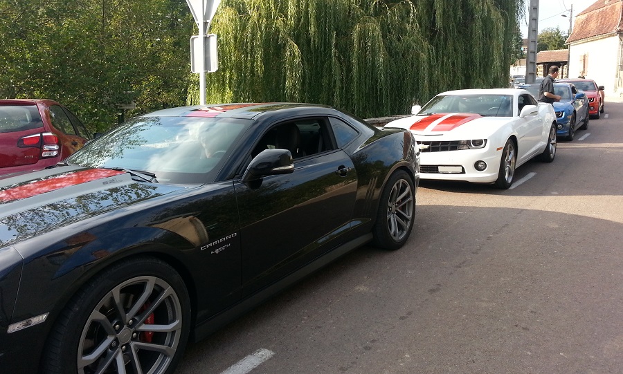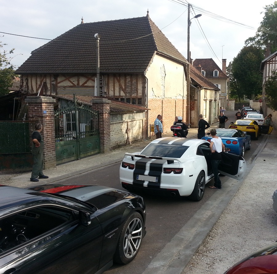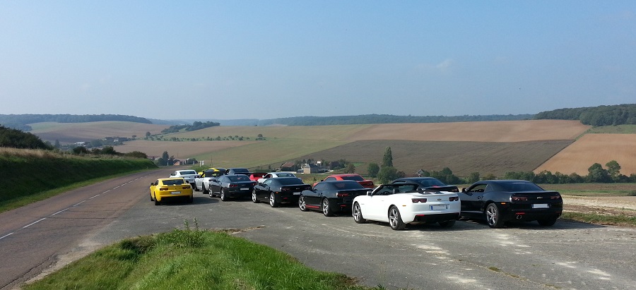 Le dimanche matin, après une nuit de repos bien mérité, 30 kms sur l'autoroute A5 nous ont directement conduits dans le Pays D'othe, où nous avons pu découvrir un paysage complètement différent de la veille, des routes sinueuses arpentant une région vallonnée, et traversant des villages dont les habitants avaient les yeux aussi grands ouverts que la bouche :bigeyes: , ébahis de voir une telle concentration de Camaros traverser leurs terres habituellement si tranquilles !!