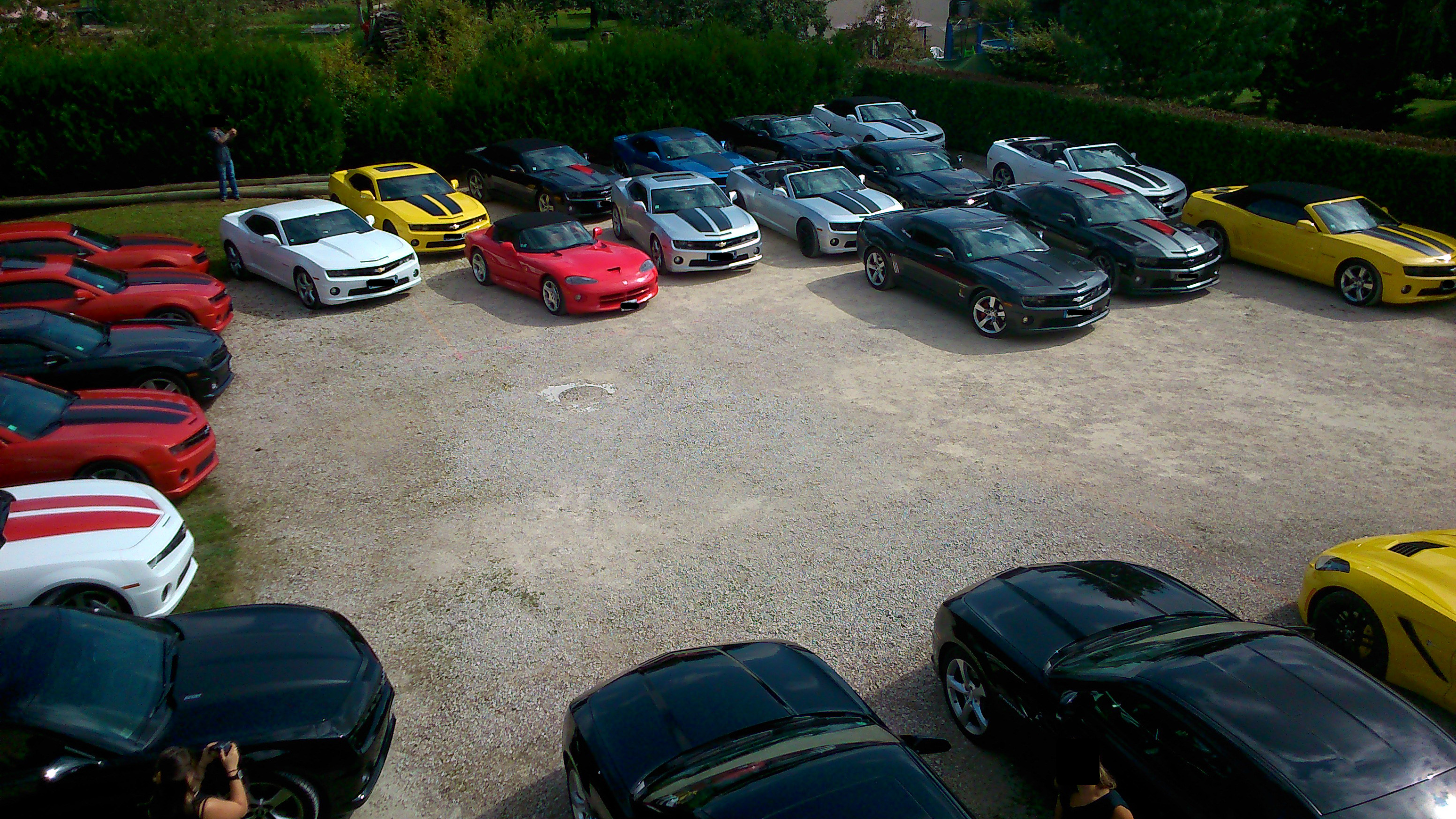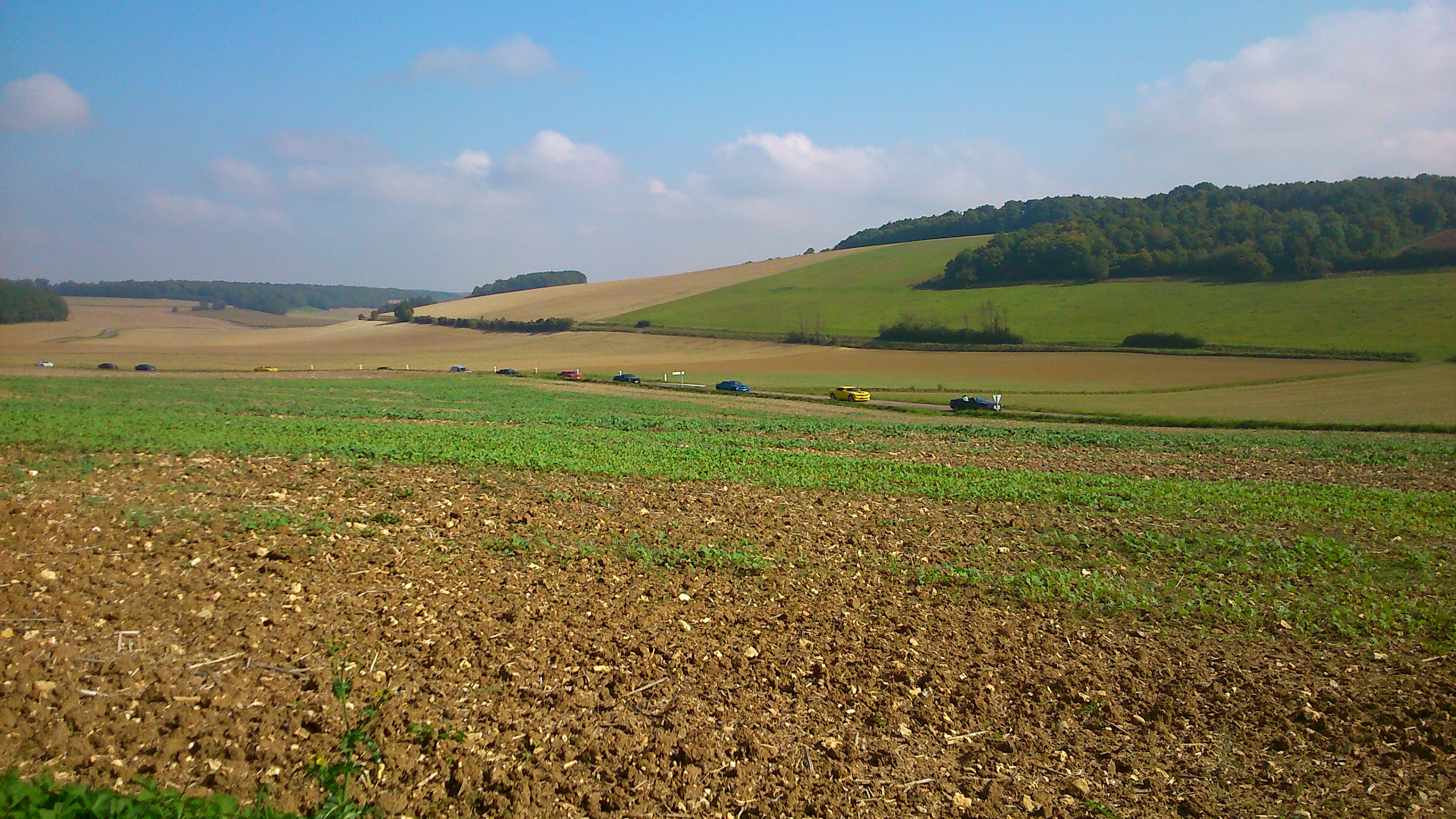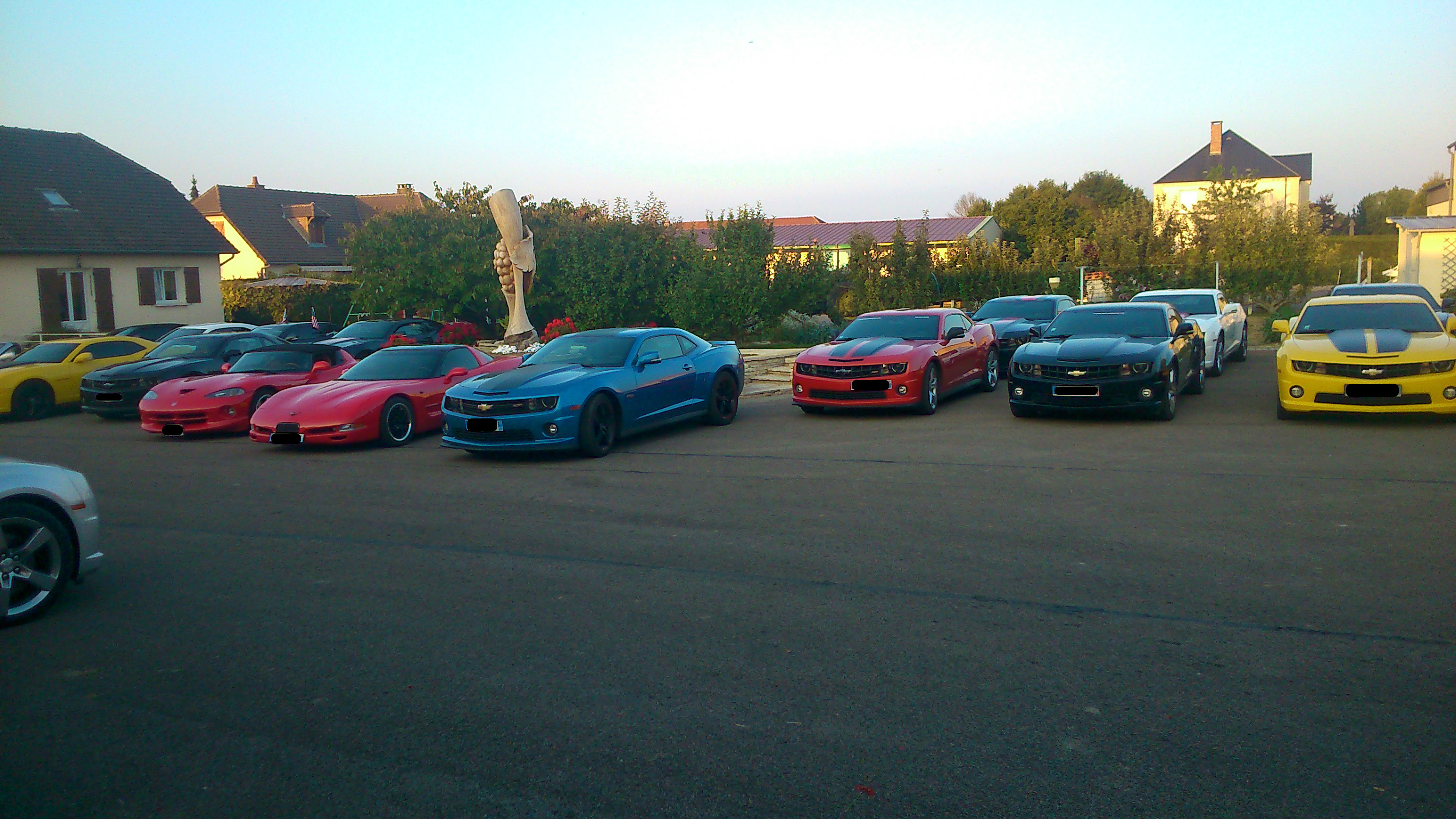 Le dimanche matin, après une nuit de repos bien mérité, 30 kms sur l'autoroute A5 nous ont directement conduits dans le Pays D'othe, où nous avons pu découvrir un paysage complètement différent de la veille, des routes sinueuses arpentant une région vallonnée, et traversant des villages dont les habitants avaient les yeux aussi grands ouverts que la bouche :bigeyes: , ébahis de voir une telle concentration de Camaros traverser leurs terres habituellement si tranquilles !!