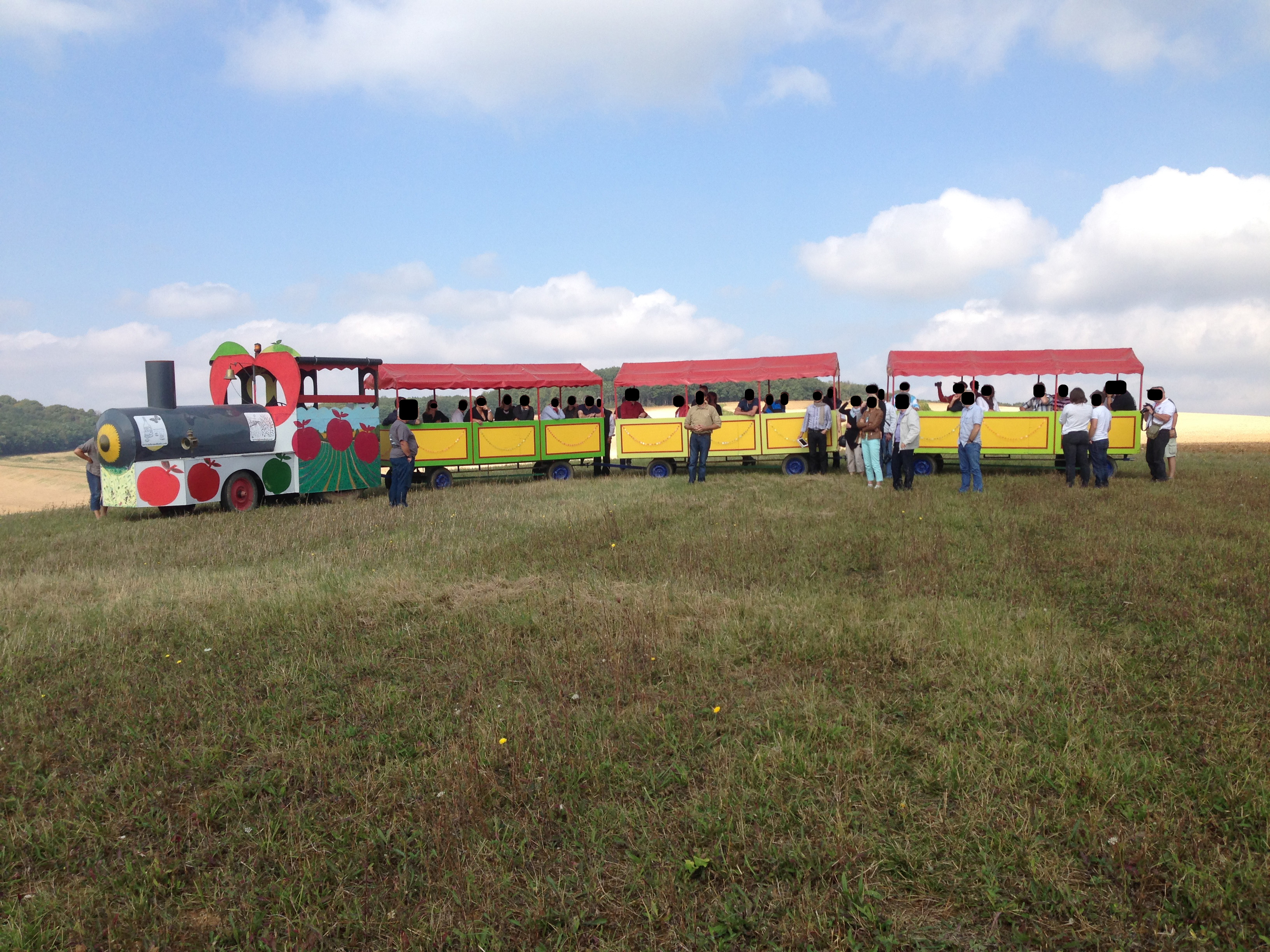 La matinée s'est achevée par la visite du Musée du Cidre, à EAUX-PUISEAUX, après qu'une petite dégustation nous fut offerte au milieu des vergers que nous avions rejoints à l'aide du petit train local....